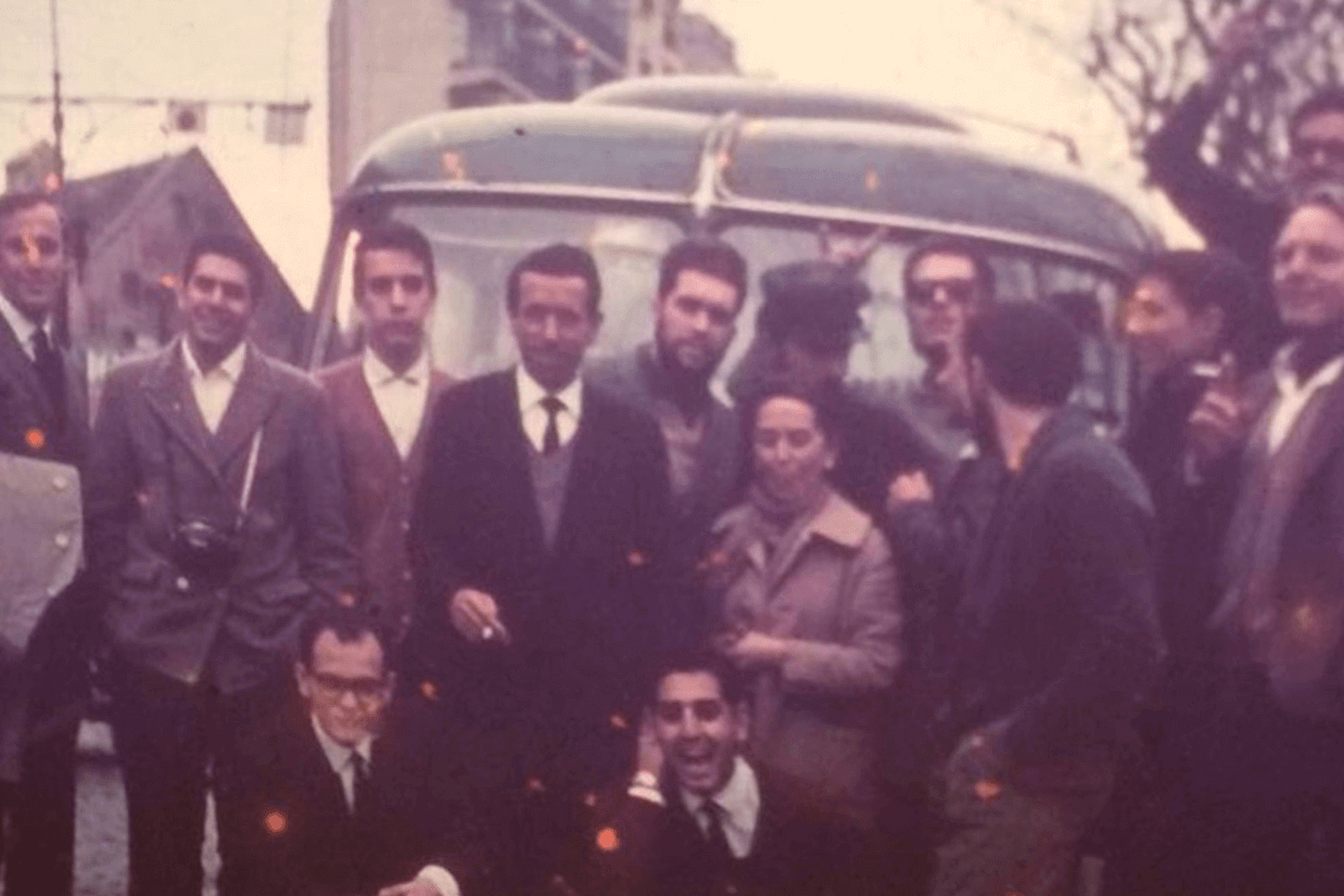 Qamal Donato com os colegas de faculdade em sua primeira viagem para a Europa, um roteiro que incluiu 15 países e durou três meses, em 1965.