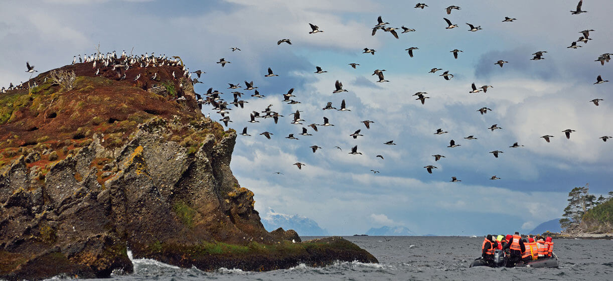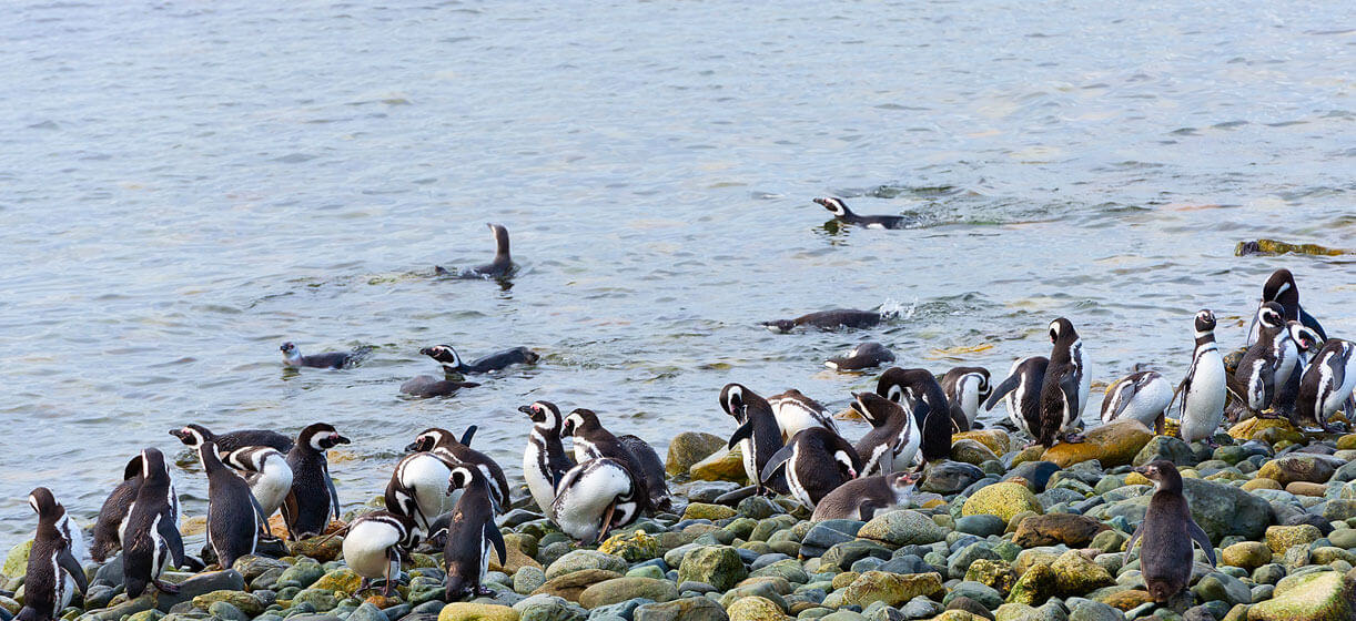 A expedição pelas águas gélidas do Estreito de Magalhães começa revelando o Parque Nacional Alberto de Agostini, com seus glaciares e fiordes arquitetônicos. Com sorte, é possível encontrar elefantes marinhos pelas praias antes de seguir para as charmosas ilhotas Tuckers, onde vivem colônias de pinguins-de-magalhães.